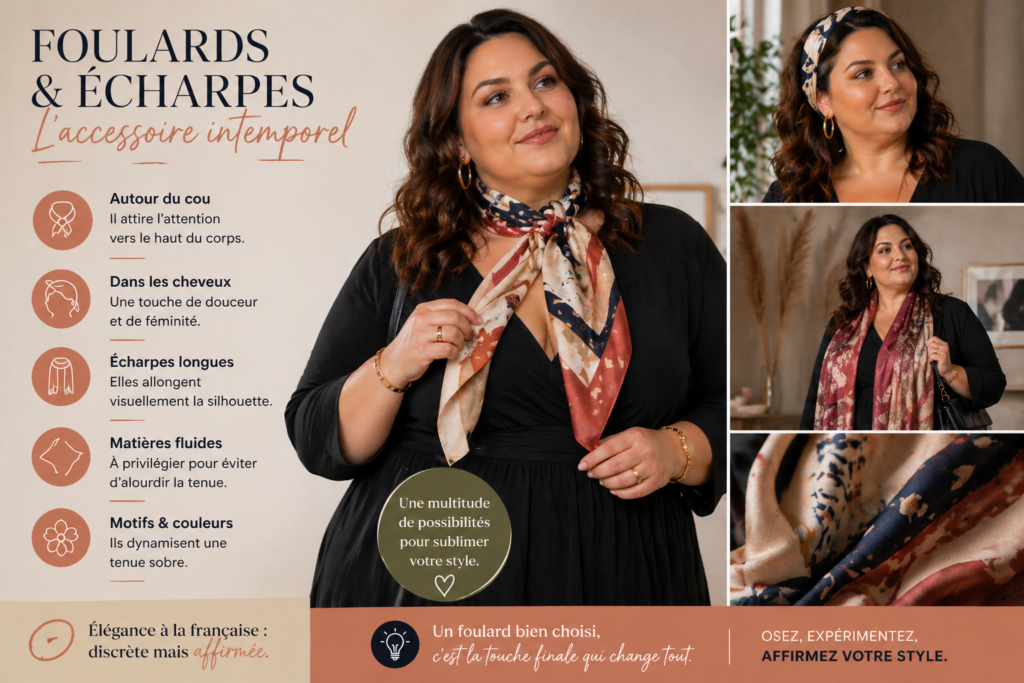 Comment utiliser les foulards et écharpes pour accessoiriser une tenue grande taille ?