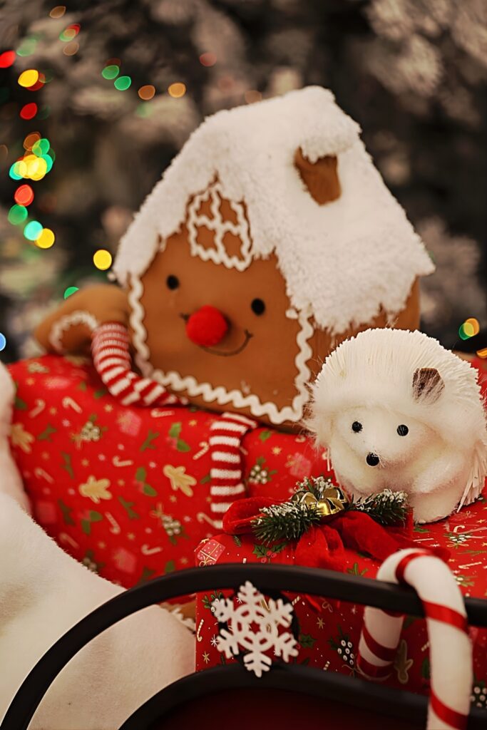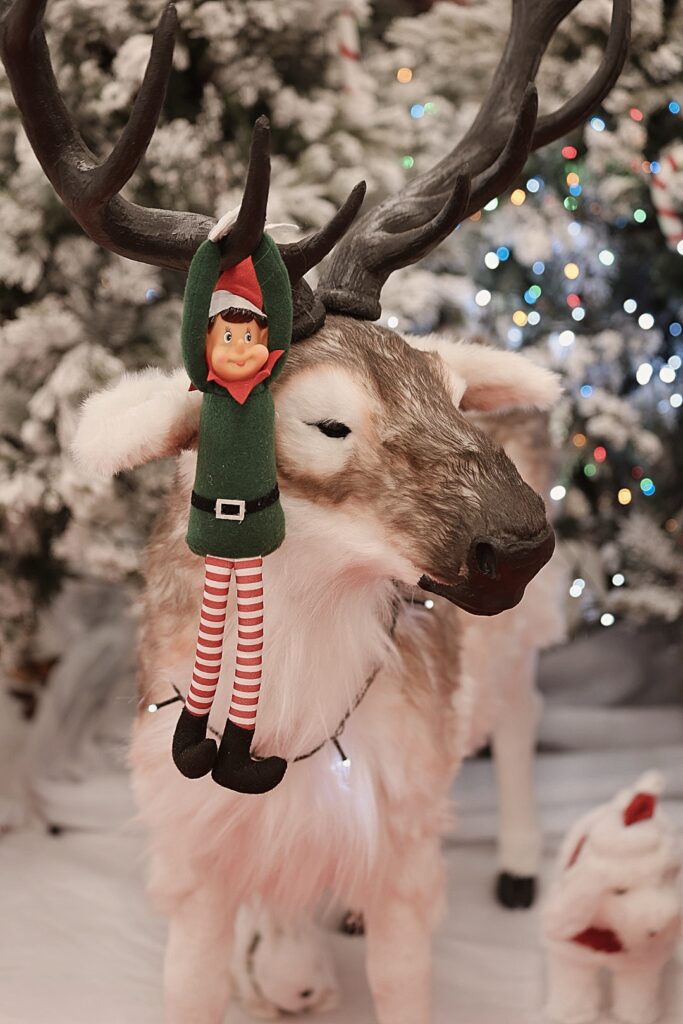Le choix de la galerie Atout Sud à Rezé a largement contribué à l’atmosphère du shooting. Le lieu s’est transformé en véritable décor de Noël, riche et immersif. Sapins enneigés, cadeaux, rennes, lutins, cannes en sucre et maisons en pain d’épices composaient un univers chaleureux et généreux, fidèle à l’esprit des fêtes.