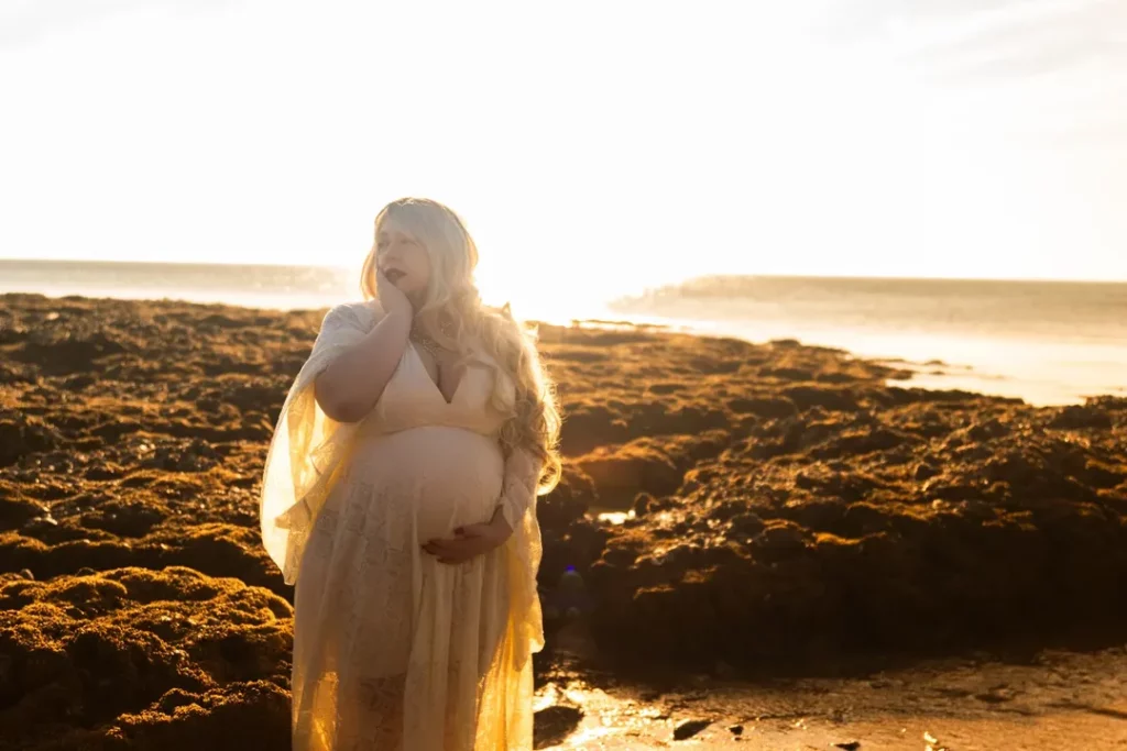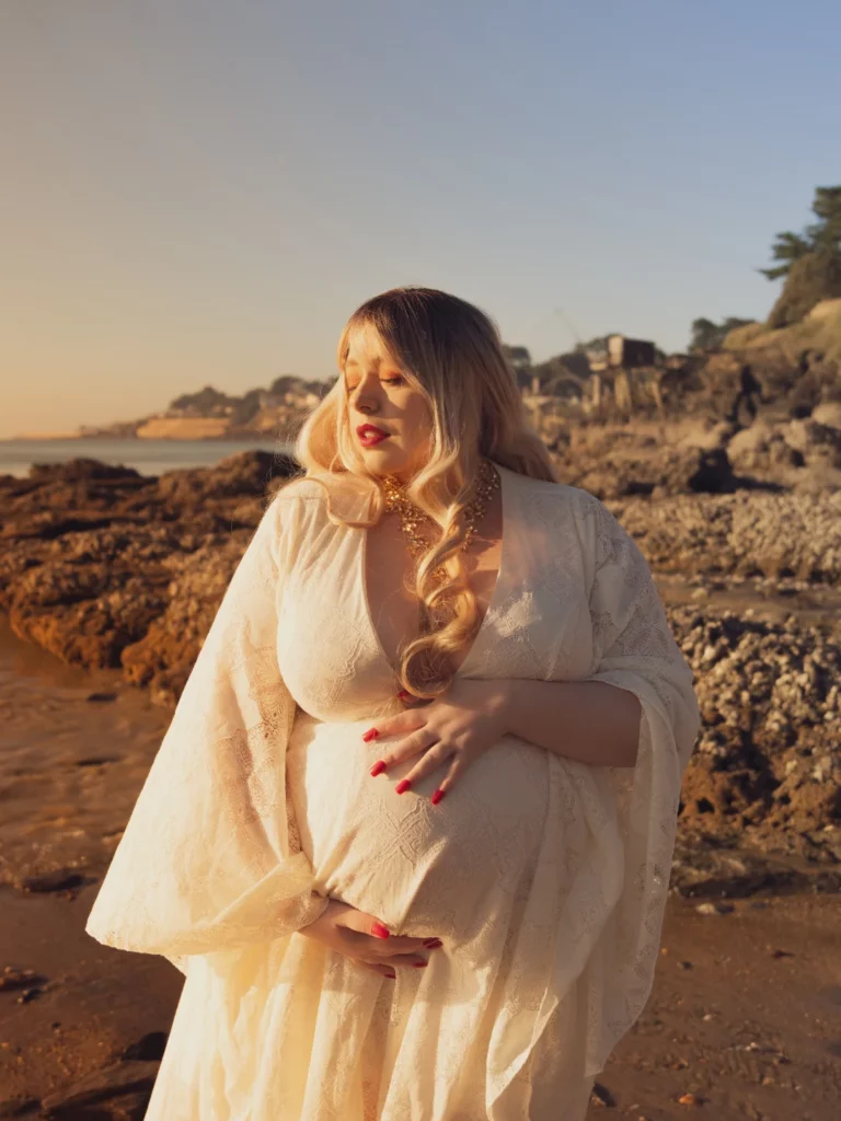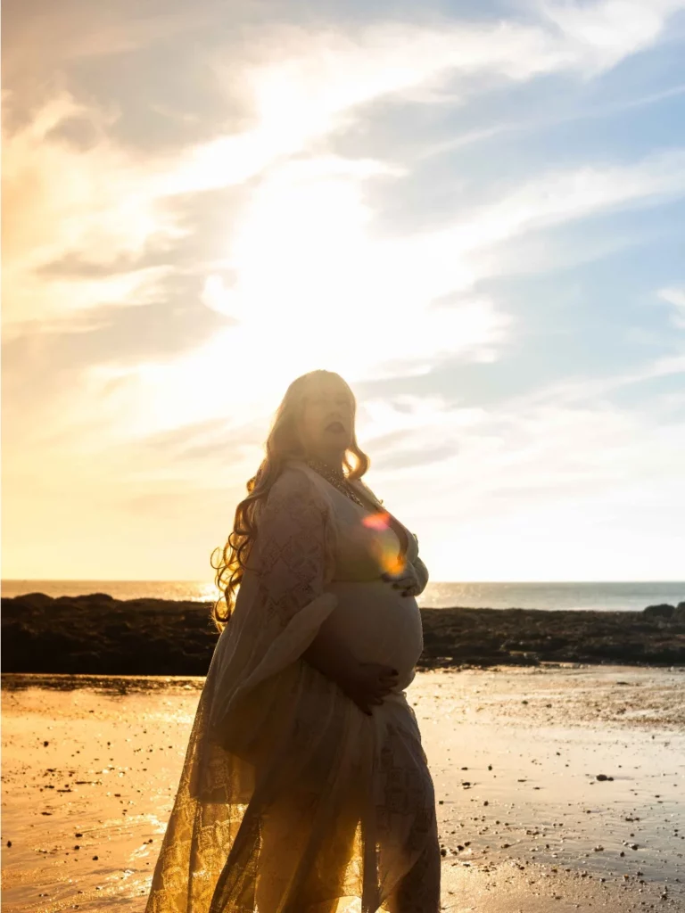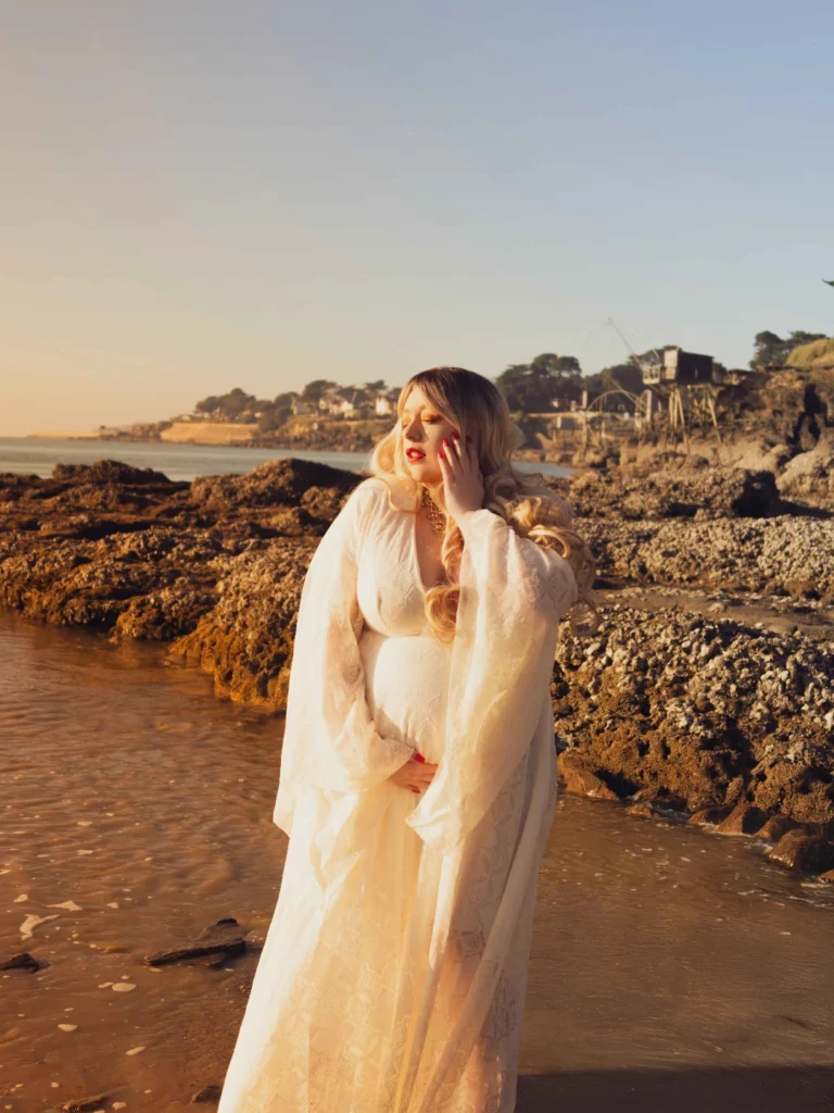 À la plage de la Birochère, à Pornic, ce shooting a été bien plus qu’une séance photo. C’était une rencontre entre un lieu, une lumière, une sensibilité artistique et une histoire personnelle. Une manière douce et respectueuse de célébrer la maternité, ancrée dans le présent et tournée vers l’avenir.